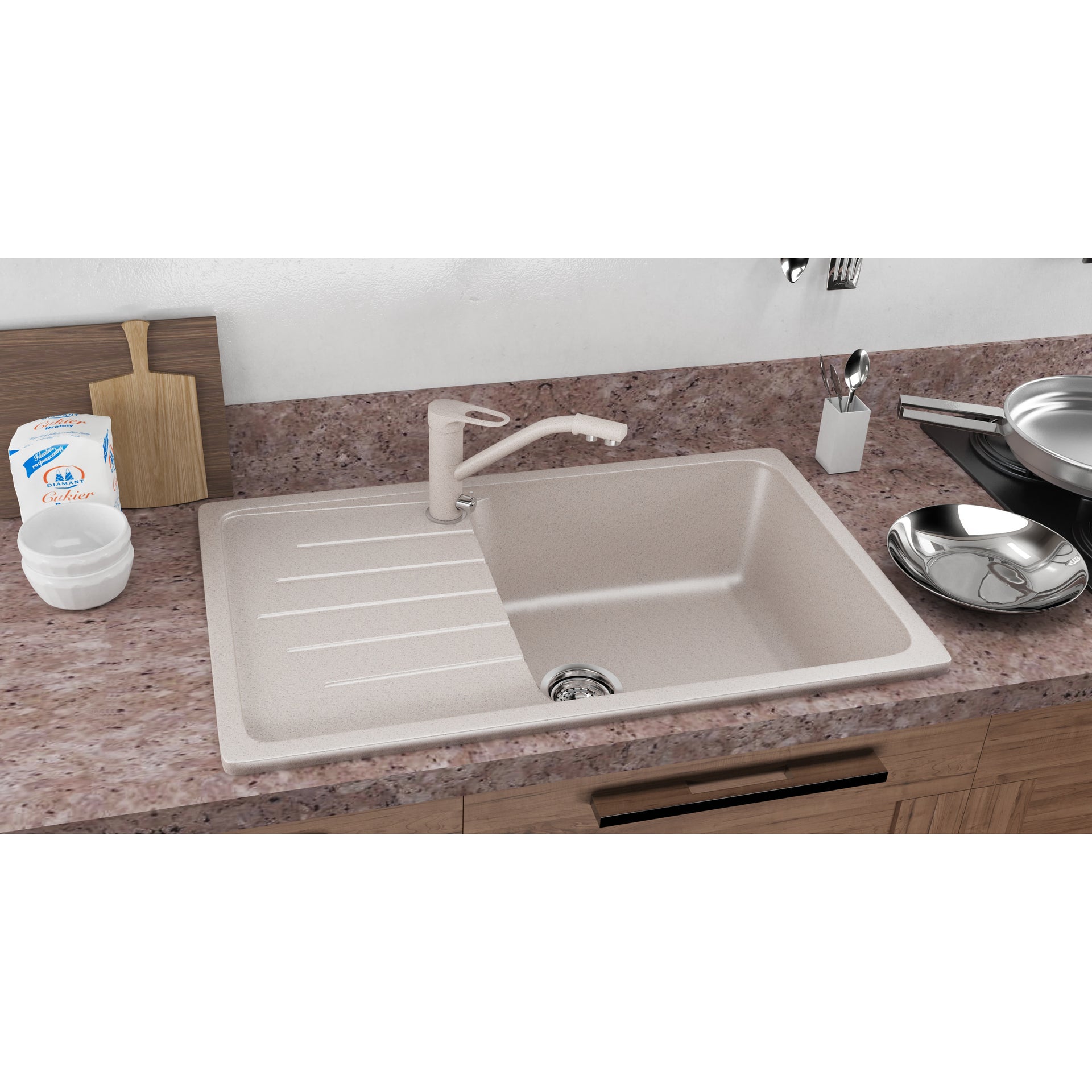 ULGRAN MƏTBƏX ÇANAĞI (MOYKA) SERAMİK 1-Lİ BEJ 570х465 U-403-328
