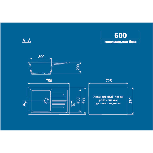 ULGRAN MƏTBƏX ÇANAĞI (MOYKA) SERAMİK 1-Lİ AĞ 570х465 U-403-331