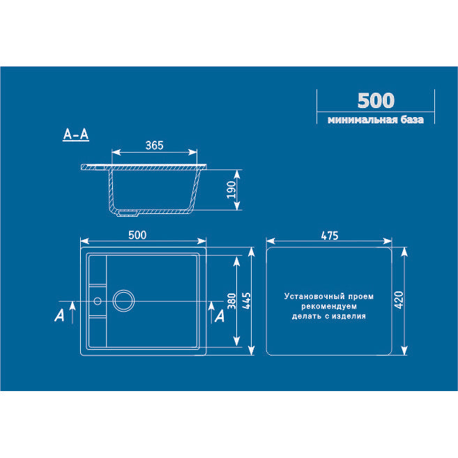ULGRAN MƏTBƏX ÇANAĞI (MOYKA) SERAMİK 1-Lİ AĞ 570х465 U-403-331