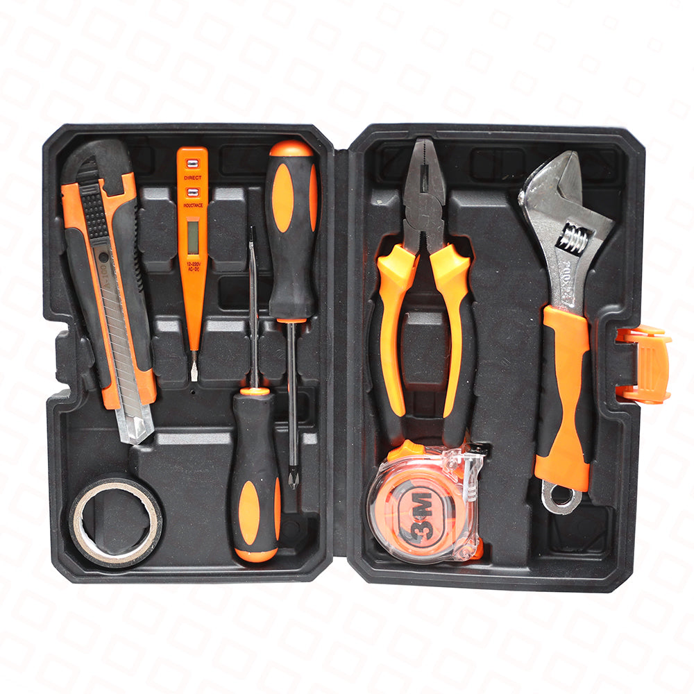 | Yivli tornavida, çarpaz tornavida, usta bıçağı, elektrik qələm, 3 metr lent ölçüsü, 6 düymlük məngənə, elektrik lenti |