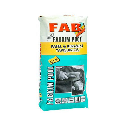| Məhsul haqqında | Sement əsaslı, suya və dona dayanıqlı, yüksək yapışma özəlliyinə malik elastik kafel yapışdırıcısıdır. FABKIM POOL əsasən hovuz və islaq məkanlara döşənəcək plitələrin yapışdırılmasında mükəmməl nəticə göstərir. |